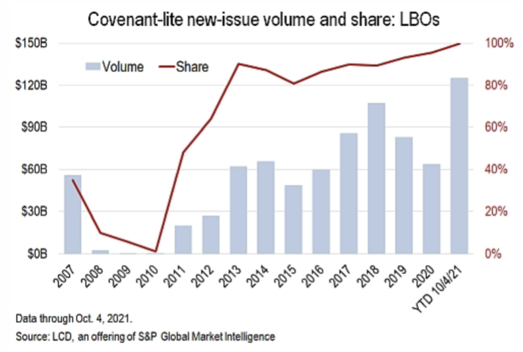 To deploy such massive amounts of capital, lenders are enticing borrowers with covenant-lite loan packages. This tips the balance of risk and reward towards the borrowers’ favor, as lenders are willing to allow more freedom and flexibility for borrowers and consequently take on more risk associated with these loans.